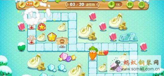 此外,保卫萝卜游戏还设计了非常多的强力道具,它们无一例外地都能辅助玩家们进行游戏,其中最好用的就是全屏冰冻了,它能够大范围冻住怪物,时间长达五秒钟,能有效提高防御塔的输出,这也增加了此类游戏的可玩性,也让很多的玩家不约而同的来玩。