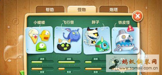 在这里还可以查看当前解锁的炮塔属性、以及游戏中的怪物
