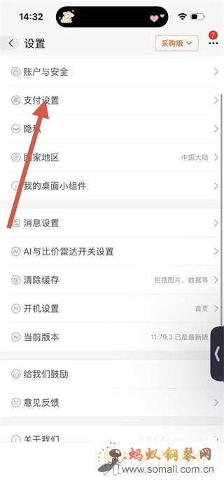 3、在设置界面,点击“支付设置”选项,进入支付设置页面。