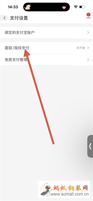 4、在支付设置页面,点击“面容/指纹支付”选项,即可开启面容支付功能。