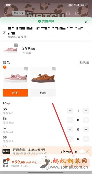 4、在订单确认页面选择鞋子颜色、尺码等信息,点击“立即支付”,完成商品购买操作。