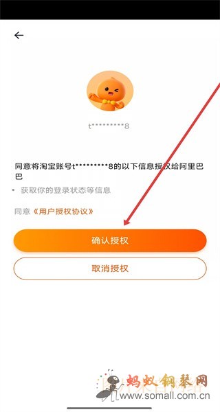 3、在授权页面点击“确认授权”,完成淘宝账号授权登录。