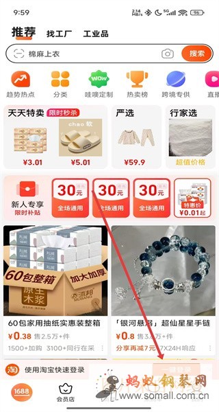 4、登录完成后,即可开始使用1688,如查看商品、参与新人专享活动等。