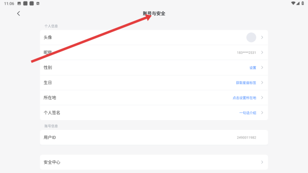 4、登录成功后,进入账号与安全相关页面,可查看头像、昵称等个人信息,也能进行相关设置。