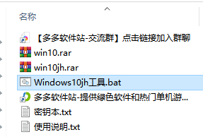 1、下载得到压缩包进行解压,双击“Windows10jh工具.bat”运行,